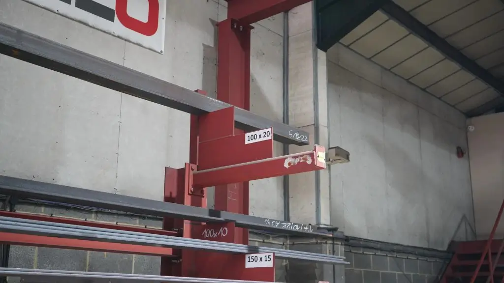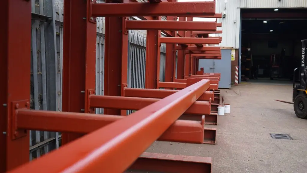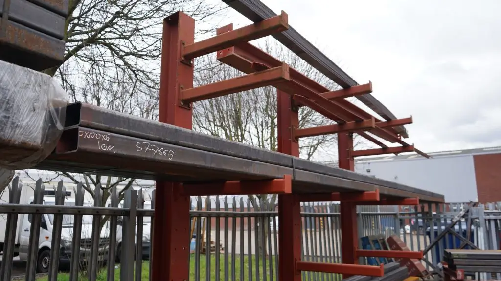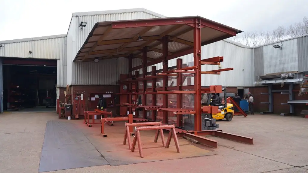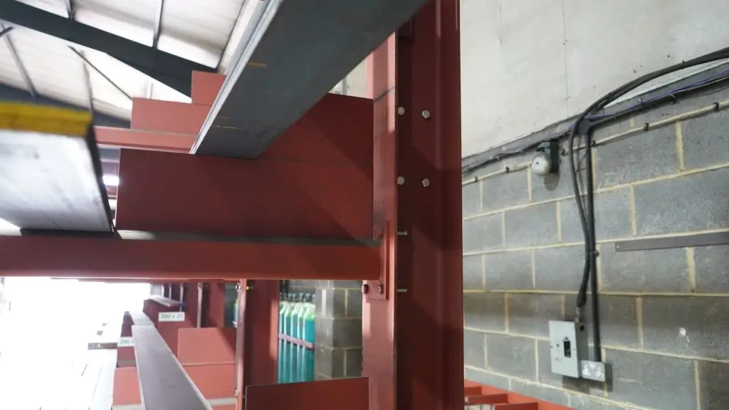 The racks to be 4.0m high at 1.0m centers with bracing in every other bay. The rack shelves to be 1.0m long cantilever beams supporting 300kg load.